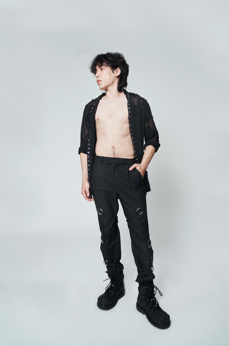Feeling in your villain era? How about standing out with the Bond Trousers. These trousers are a statement piece with metal rings wrapped around your legs.
