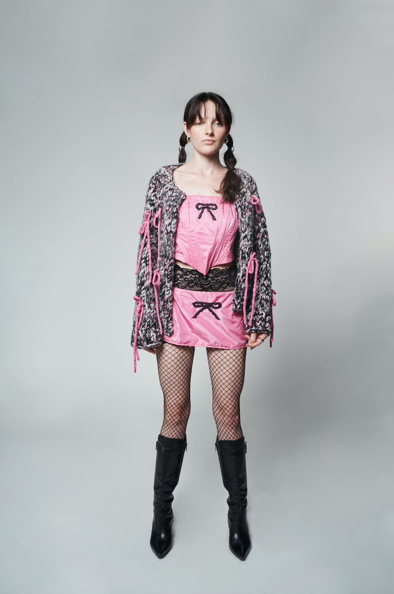 Composition: Cardigan- 100% Wool, Bows-100% Superwash Merino & Tweed